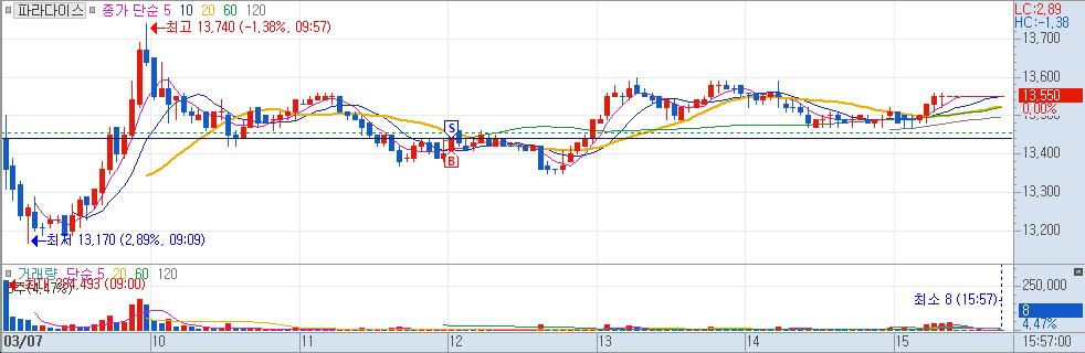 - 종목명 : 파라다이스