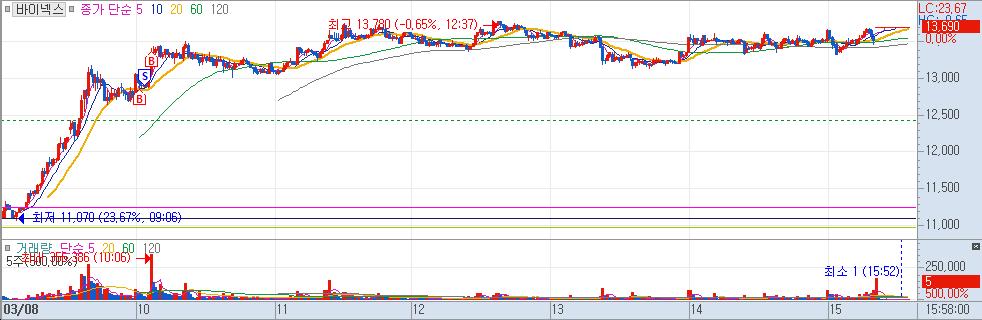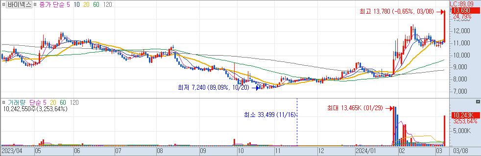 240308 / 바이넥스 / +24,305(+2.90%) / 신고가 매매