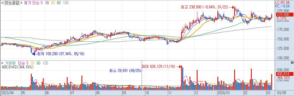 240308 / 리노공업 / +157(0.02%) / 뇌동