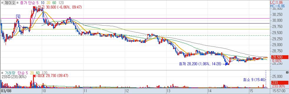 240308 / 제이오 / +1,440원(+0.97%) / 종가배팅