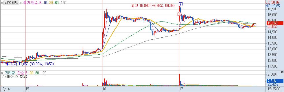 급등을 보고 뇌동 매매 하였음.