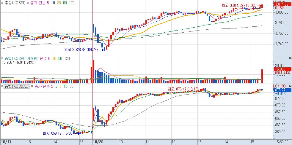 "코스피 최고가 기록 마감. 코스닥 상승 추세로 마감. 로봇, 개성공단, 반도체장비 섹터 강세. "