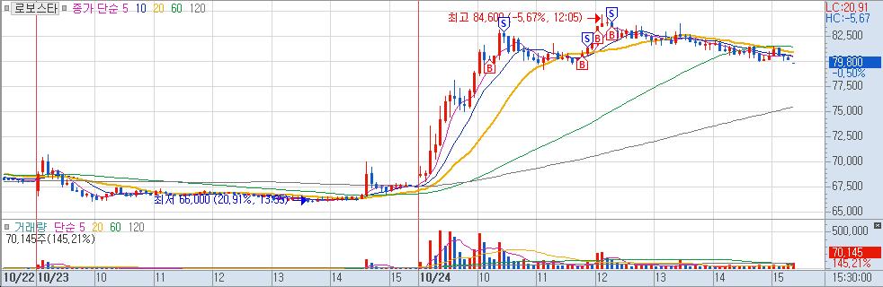 신고가를 기록하여 눌림에 매매 함. 당일 로봇 대장주였음.