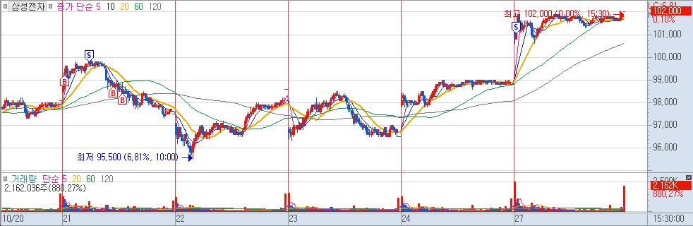10만전자가 코앞이라 기념으로 매수함.