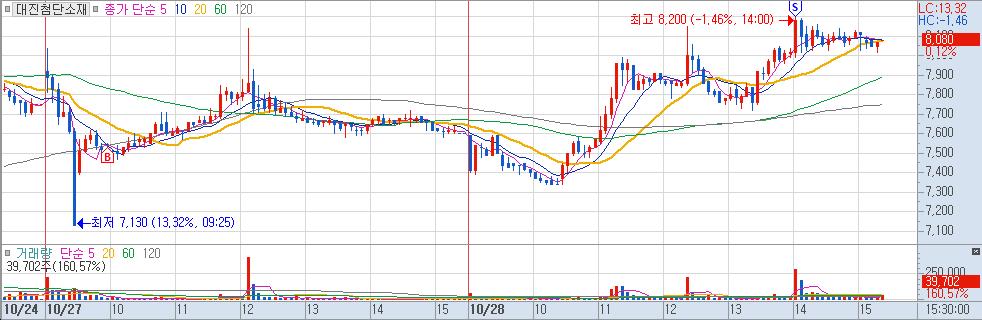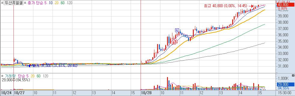 대부분의 종목이 하락하는 중에 이 종목만 살아 있고, 신고가를 계속 유지해 주었다.
