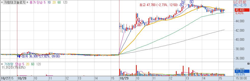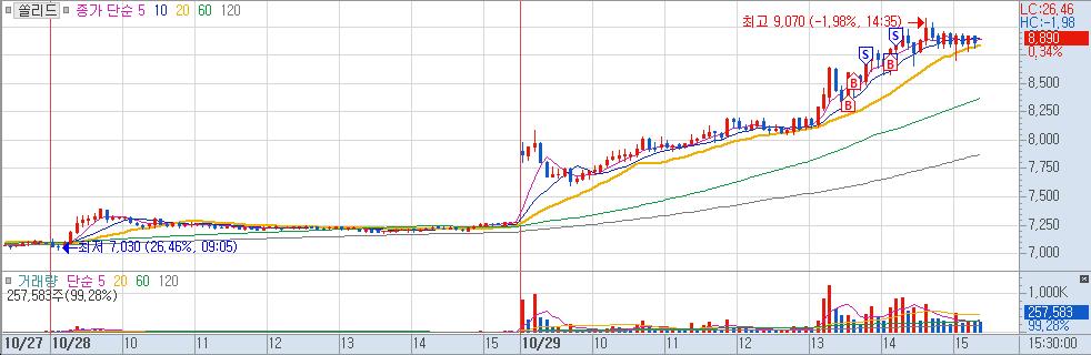 계속 우상향 하고 있고, 프로그램 매수가 계속 들어왔다. 당일 테마와도 잘 맞았다.