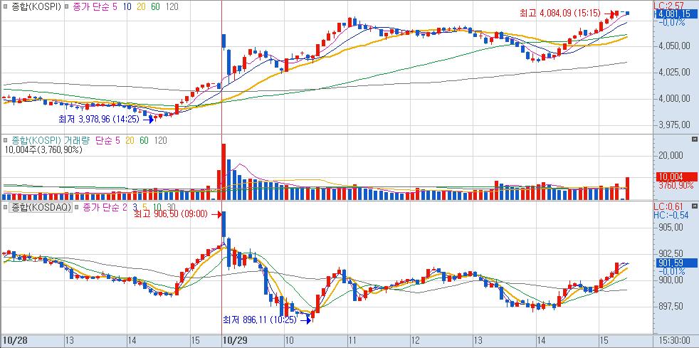 "코스피, 코스닥이 사상 최고치 경신. 외국인, 개인이 소폭 매도 했지만, 지수는 굳건함. 당일 경주에서 한미정상회담이 있어, 모든 관심이 집중됨. 엔비디아가 10달러를 노키아에 투자하겠다는 기사에 통신장비, 5G 관련주가 급등했음."