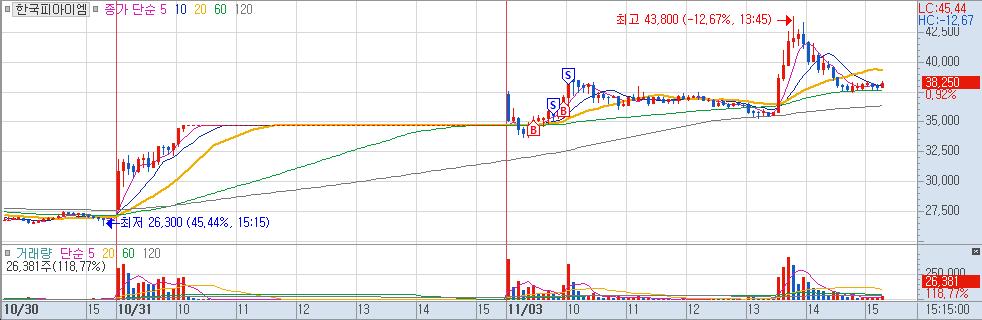 4연상을 갔던 삼익제약 직후 첫 상장하는 신규주에다 로봇주이다. 이건 관심이 없을 수가 없다는 판단에 언제살지 지켜보고 있었다. 완전한 상승 초입에 매수하였고, 상단에 잘 팔았다. 다만 눌림을 공략하려 했는데, 폭락을 조금 예측하긴 했는데, 손절을 못했다. 손절을 하고 다시 바닥에서 매수했으면 수익구간이었을 것이다.