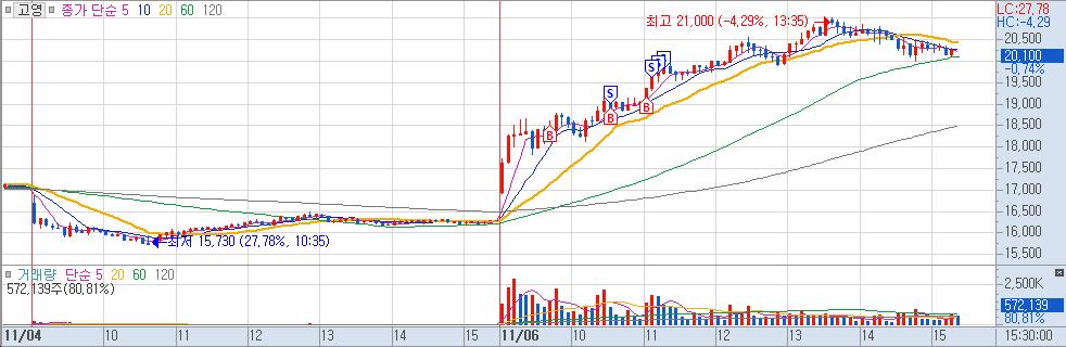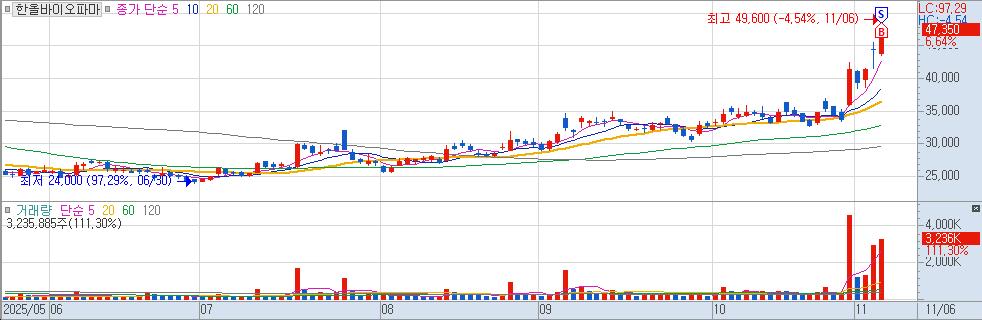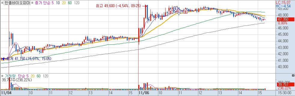 제약/바이오쪽으로 수급이 들어오길래 당일 거래대금 상위의 하올바이오 파마에 접근하였다. 당일 최고가 근처에서 서성대기에 돌파할 것같아 매수하였는데, 고영이 관심을 가져간 것 같다.