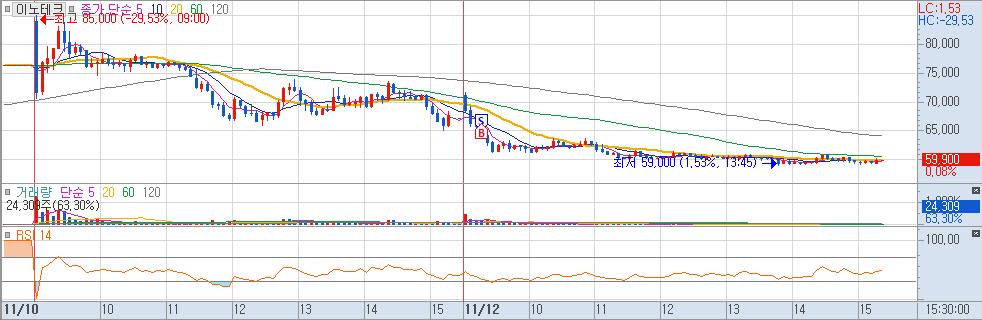 하락중에 첫날 최고가 부근에서 반등하지 않을까 하는 기대에 매수 하였다. 전혀 그런것 없이 그대로 하락 하였다.