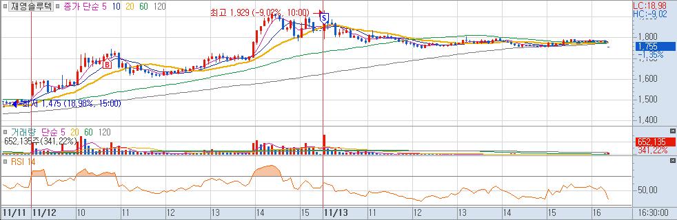 전날 거래대금을 동반한 장대양봉을 보여 주었다. 당일 초반에도 장대 양봉이 있었다. 그리고 반등은 약했다.