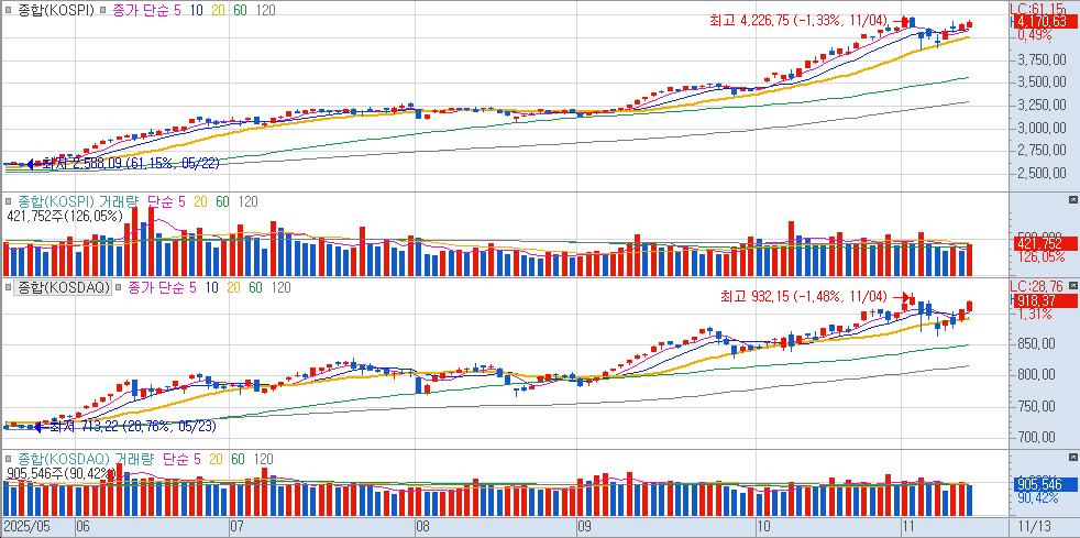 2025년 11월 13일(목) [+3.99% / +84,259원] [+2.64% / +8,709원]
