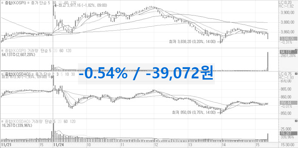 2025년 11월 25일(화) / -0.54% / -39,072원