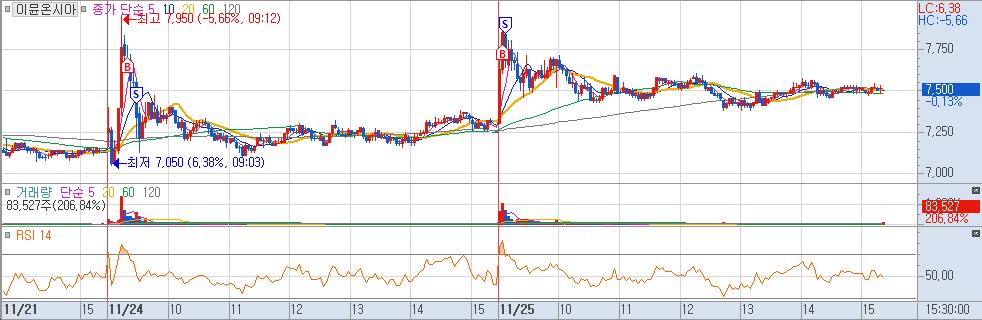 - 분봉상 전저점 이탈시 매도