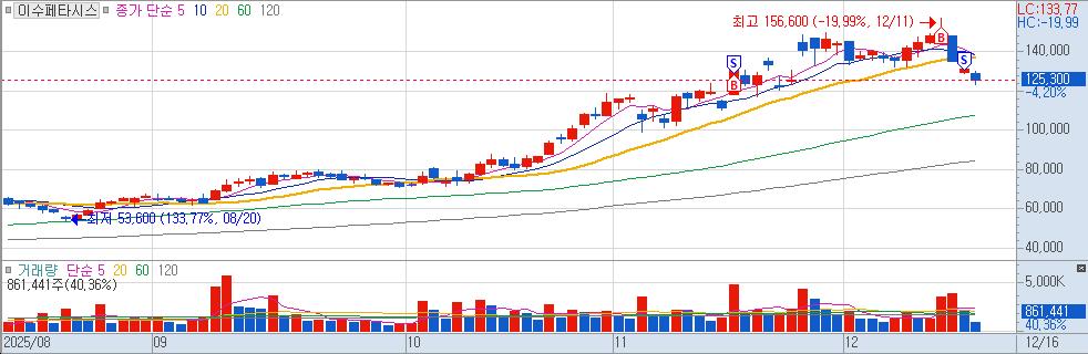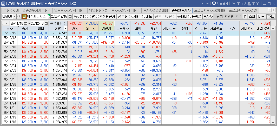 | 이수페타시스 | KRW | -14.60% | -333,616원 |