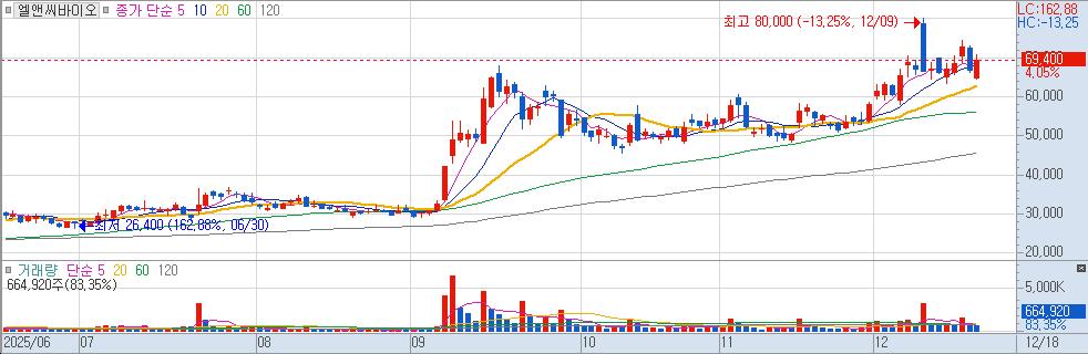 | 엘앤씨바이오 | KRW | -11.25% | -49,294원 |