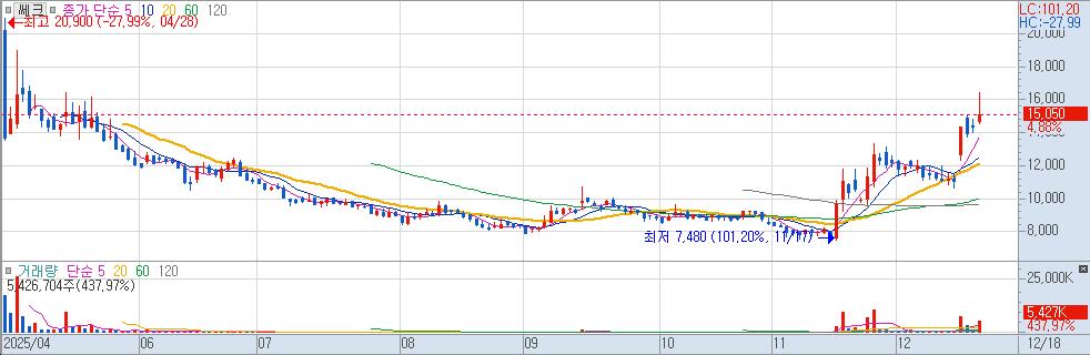 | 쎄크 | KRW | -0.22% | -1,953원 |