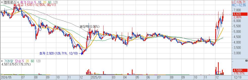 | 켐트로스 | KRW | -5.45% | -34,098원 |