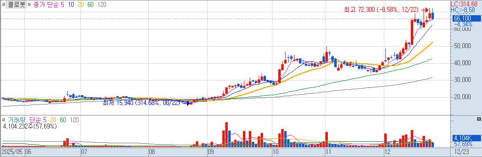 | 클로봇 | KRW | +0.71% | +3,516원 |
