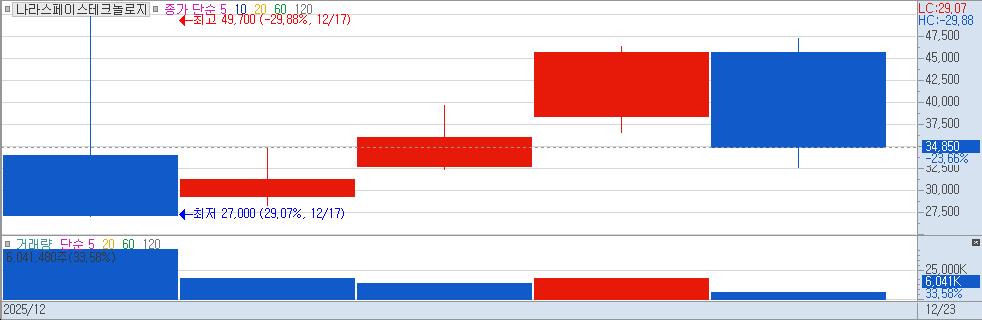 | 나라스페이스테크놀로지 | KRW | -6.32% | -11,700원 |