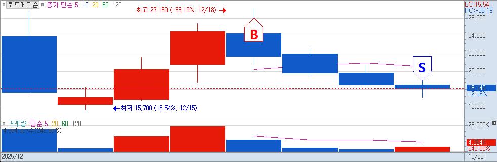 | 쿼드메디슨 | KRW | -27.08% | -155,438원 |