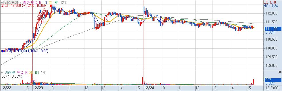 역시나 삼성전자로 수익 내기는 정말 어렵다. 나같은 놈은 줘도 못먹네. 26일에 5%나 상승했는데, 뭔 손절이냐. 삼성이 신고가를 눈앞에 두고 있었다. 112,400원 이었는데, 전날 112,500원을 찍었다. 다음날 분명 넘길 거라고 생각하고, 들고 있었는데, 프로그램이 팔아치우는 것 보고 매도했다. 오후에 매수하여 외국인은 순매수로 돌아섰다. 배당 때문이었을까.