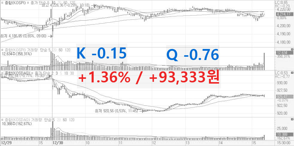 2025년 12월 30일(화) / +1.36% / + 93,333원