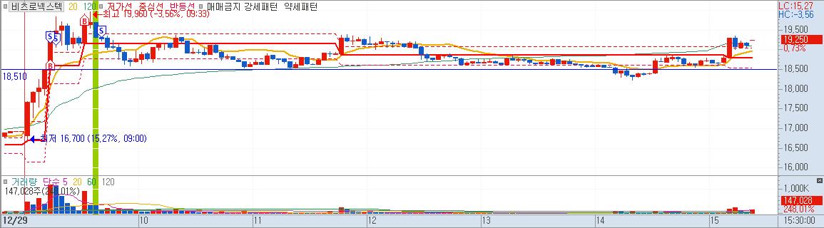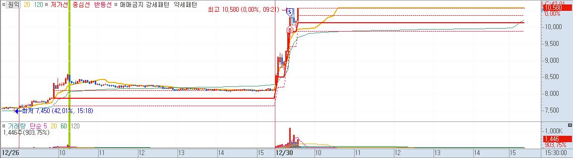 장초반 외국인이 매도를 쏟아낼 때, 유일하게, 매수세였다. 전날 상한가였고, 당일 시세를 좀 더 줄 수 있다고 생각하여 들어갔다.