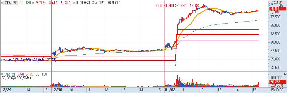 원익이 상한가를 가있고, 수급이 계속 들어왔다. 반도체 섹터에 수급이 강하게 쏠리고 있었다.