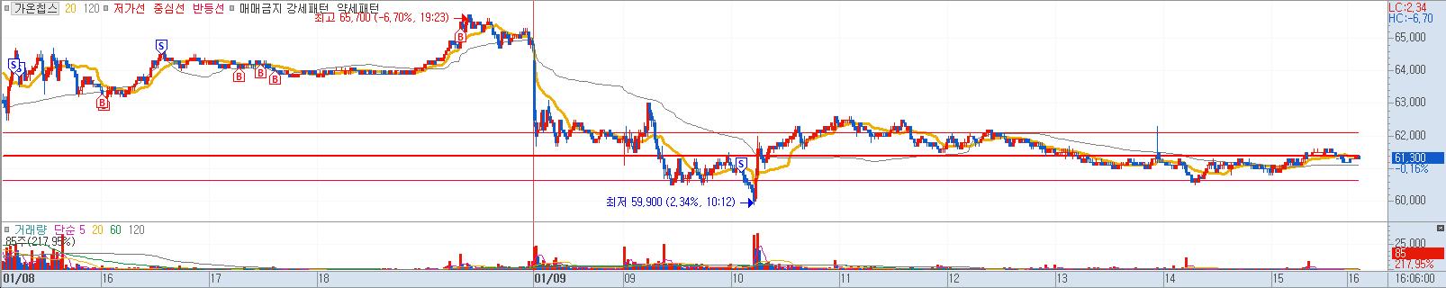 - 62,000원 이탈시 매도