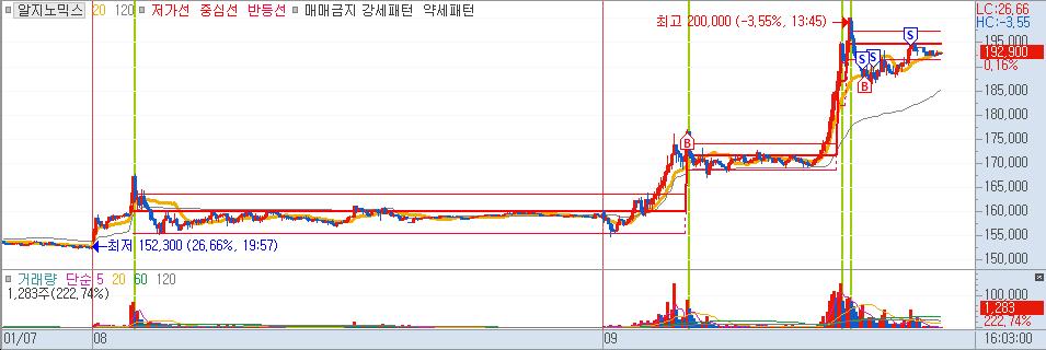 따로 뉴스는 붙지 않았다. 신고가를 돌파하기에 따라 붙었는데, 물렸다. 외국인, 기관이 쌍끌이 매수를 하고 있었고, 물린 이후에 나가는 모습이 아니라 오히려 매수를 하는 모습에 버텼다. 그냥 횡보하여 끝날경우에는 월요일까지 버틸 생각이었다. 오후에 슈팅이 나왔다. 뉴스가 계속 나오지 않아서 불안했는데, 아주 강력하게 쏘아 올리기에 상한가에서 매도할 생각을 했다. 오늘 손해를 만회만 하고 매도하고 나왔다.