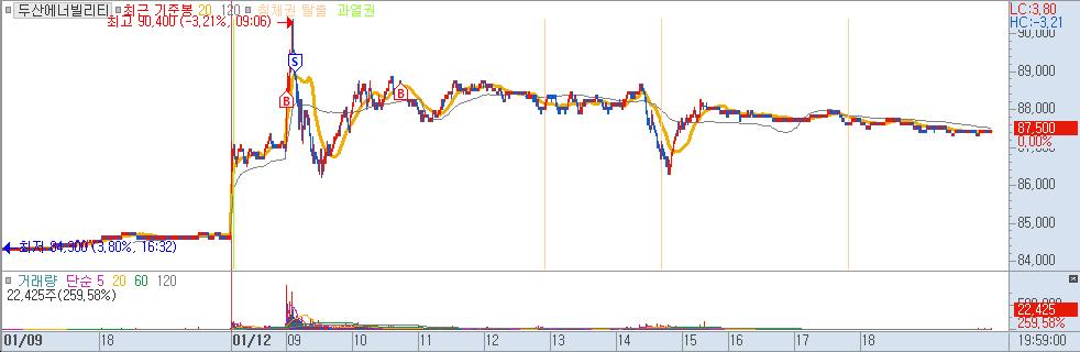 일봉상 박스권을 강하게 뚫어 주어서, 시초가에 들어갔다. 요즘 전력수요 문제가 많이 대두되어서, 드디어 시세가 나오겠구나 하고 매수하였고, 분할 매수, 불타기 할 생각이었는데, 수직으로 올라갔다가 수직으로 떨어져서 일단 손절하였다. 프로그램이 계속 매수하고, 바닥에서 다시 기어올라오기에 매수하였는데, 그대로 물렸다. 평단 낮추기 안 하고 다음날까지 가져가기로 했다.